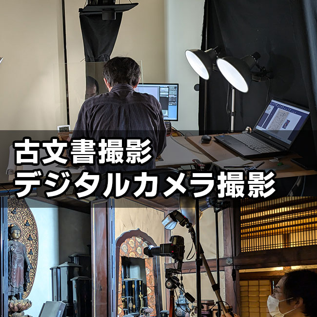 国宝、重要文化財、貴重書の撮影実績も豊富なカメラマンが多数在籍しております。史料を丁寧に取り扱い、正確に美しく撮影することを第一として、文献・絵図・掛け軸・絵画・アルバム撮影やデジタル撮影・デジタルアーカイブ構築など、貴重な史料、文献の保存と活用のお手伝いをさせて頂きます。